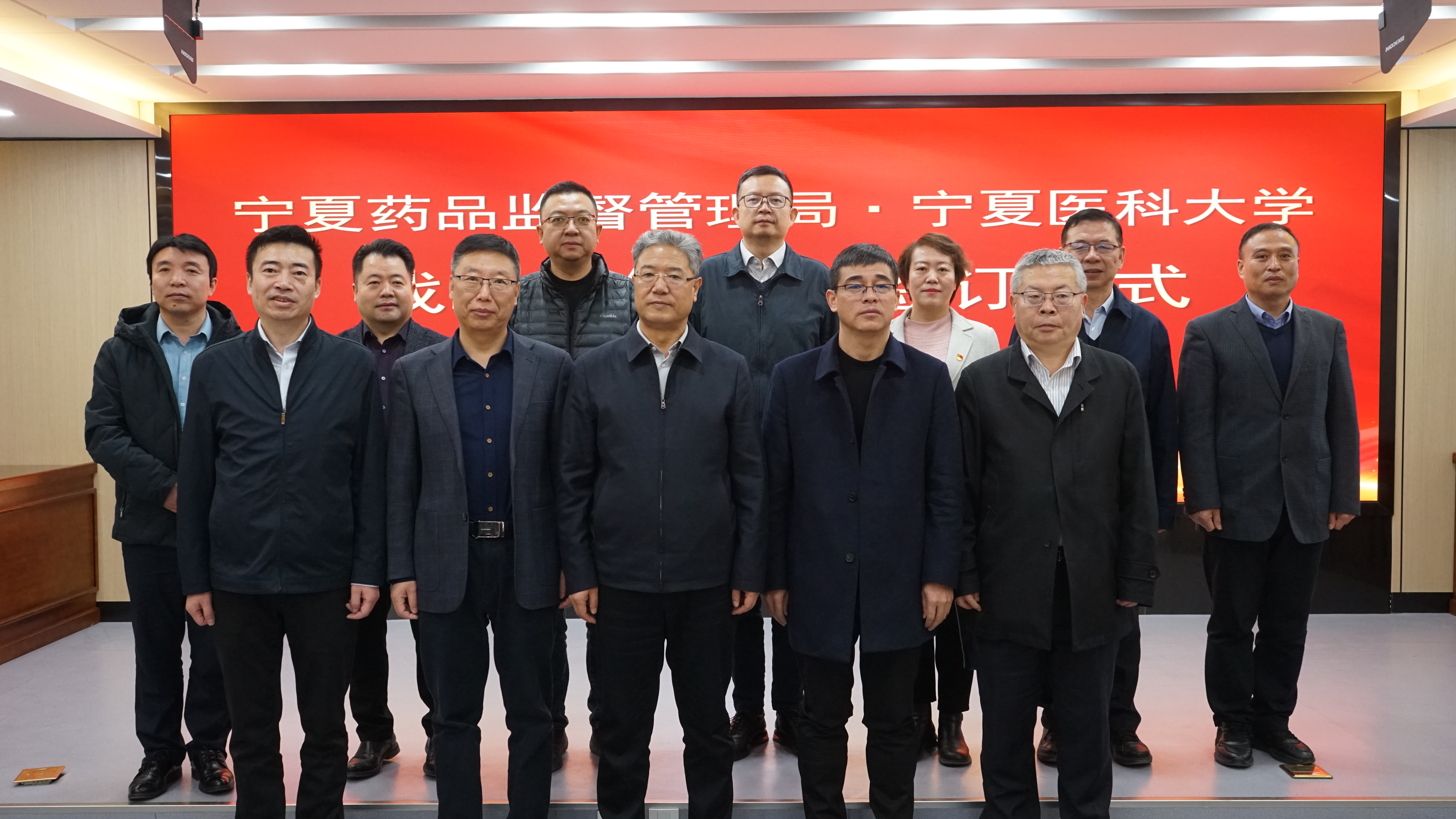 签订仪式由宁夏药监局党组成员、副局长郭涛主持,宁夏药监局党组成员刘峰及有关处室、直属单位负责同志,宁夏医科大学党委副书记朱建华及相关职能部门、学院负责同志参加战略合作协议签订仪式。仪式结束后,与会人员还实地参观考察了宁夏药品检验研究院。